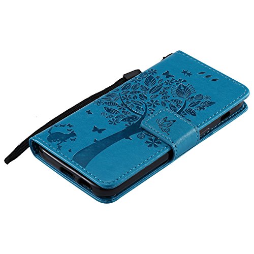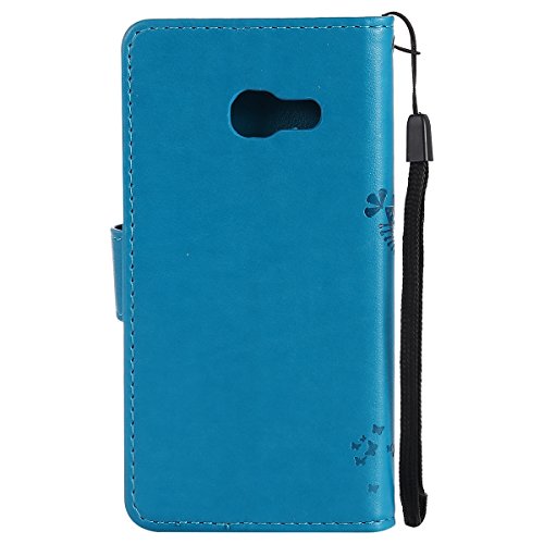 ISAKEN Compatibile con Samsung Galaxy A3 2017 Custodia, Libro Flip Cover Portafoglio Wallet Case Albero Design in Pelle PU Protezione Caso con Supporto di Stand/Carte Slot/Chiusura - Blu