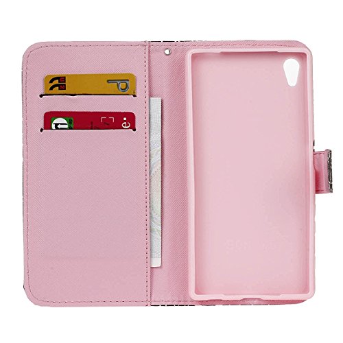 ISAKEN Compatibile con Sony Xperia Z5 Custodia Cover [PU Pelle]con Strap, Libro Portafoglio Design PU Leather Cover con Credit Card Slot Flip Protettivo Stand Copertura - Violet Bling