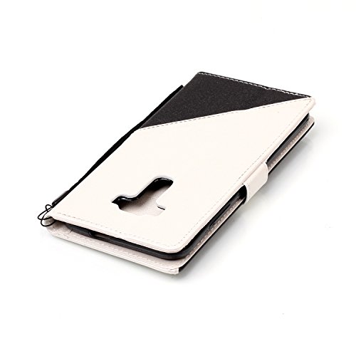 ISAKEN Compatibile con Zenfone 3 ZE520KL(5.2") Custodia[PU Pelle] Smerigliato Libro Cover con Supporto Stand e Porta Carte Portafoglio Flip Cover con Magnetica Shock-Absorption Caso, Nero+Bianco