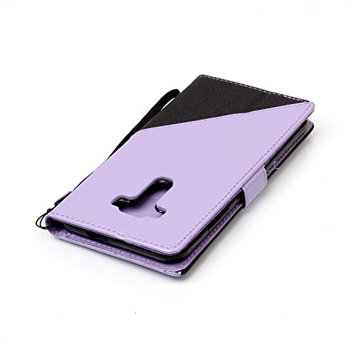 ISAKEN Compatibile con Zenfone 3 ZE520KL(5.2") Custodia[PU Pelle] Smerigliato Libro Cover con Supporto Stand e Porta Carte Portafoglio Flip Cover Wallet Case con Magnetica Caso, Nero+Violet Chiaro
