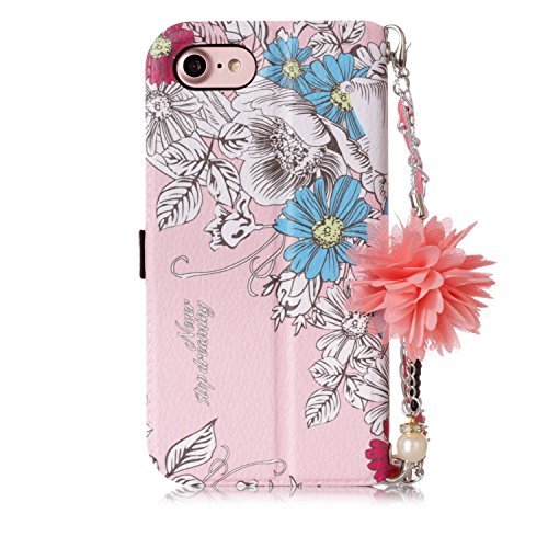 ISAKEN Custodia Compatibile con iPhone 7 /iPhone 8 Flip Cover Portafoglio Wallet Custodia in PU Pelle con Supporto Carta Slot, Corda a Mano, Portamonete Piccolo Donna Verticale Lungo - Fiori #1