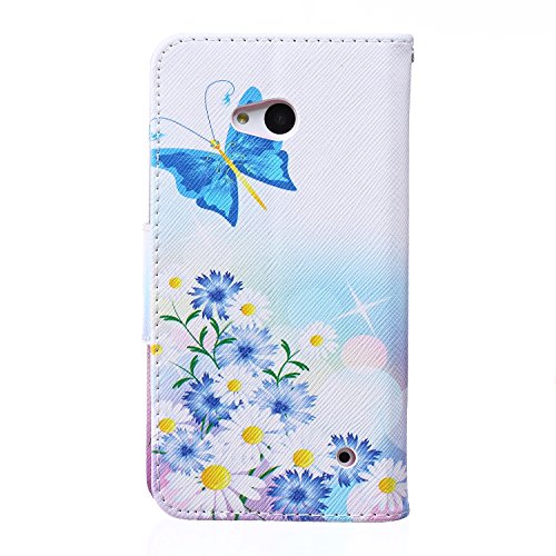 ISAKEN Custodia Compatibile con Microsoft Lumia 640 Nokia Over Creative Disegno Stampa Stile del Libro Portafoglio Cover Case in PU Cuoio Flip Caso Copertina con Funzione di Supporto - Farfalle Blu