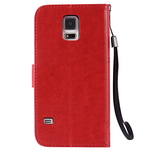 ISAKEN Custodia Cover per Samsung Galaxy S5,fiore, farfalla, modello a portafoglio in pelle sintetica, flip cover con cordino, chiusura magnetica e supporto, con porta tessere