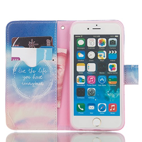 ISAKEN Custodia iPhone 6, Cover iPhone 6S, Elegante borsa Custodia in Pelle Protettiva Flip Portafoglio Case Cover per Apple iPhone 6 (6 4.7") / con Supporto di Stand / Carte Slot / Chiusura Magnetica - circle LIFE
