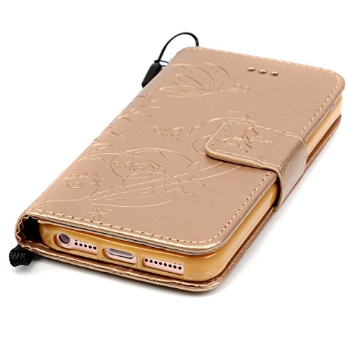 ISAKEN Custodia iPhone iPhone 5S Flip Cover Case, iPhone 5 Wallet Cover,Fiori Design in Pelle PU Case Flip Portafoglio Cover con Supporto di Stand/Carte Slot/Chiusura - Flower: Gold