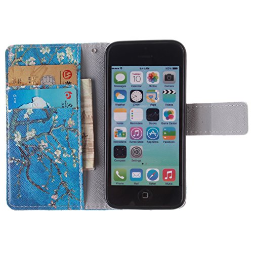 ISAKEN Custodia iphone 5C,Portafoglio Caso Cover in PU Cuoio Protettiva, Pelle PU Flip protettivo Wallet Case Cover Pocket copertina con funzione di supporto e chiusura magnetica Custodia per Apple iphone 5C (Albero in fiore albicocca)