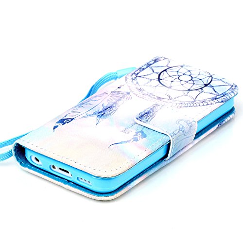 Isaken - Custodia a portafoglio per iPhone 4 e 4S, elegante disegno stampato, in ecopelle, con fessure per carte di credito, chiusura magnetica e funzione supporto, include una pellicola protettiva, Simil pelle, Light Purple Dreamcatcher, Apple iPhone 5C