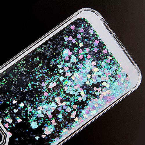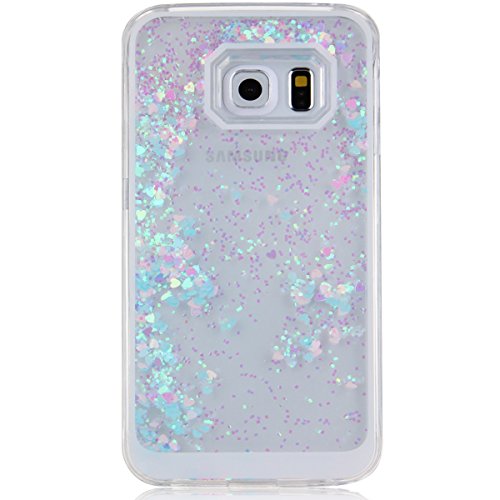 ISAKEN Custodia per Samsung Galaxy S6 Edge,3D Creative Design Flowing della copertura della cassa chiaro liquido scintillio di Stelle Floating amore cuore case cover Bling Quciksand trasparente di plastica dura Case Cover dura posteriore Samsung Galaxy S6 Edge Custodia protettiva (rosa+blu)