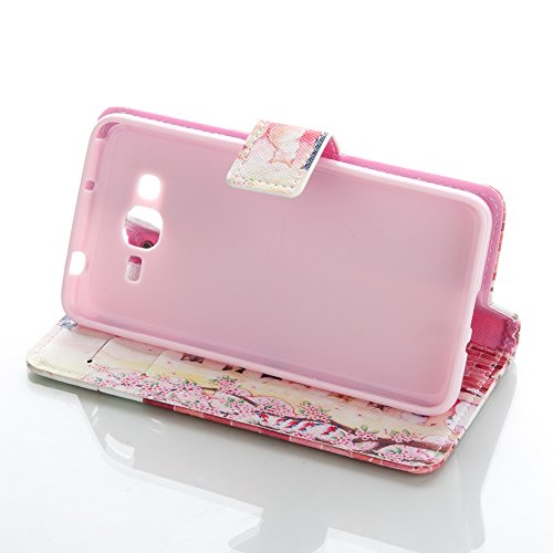 ISAKEN Custodia per Samsung Galaxy Grand Prime G530 Wallet Custodia in PU Pelle Protettiva Flip Portafoglio Case Cover con Supporto di Stand/Carte Slot/Chiusura Magnetica - Gatto ablero Rossa