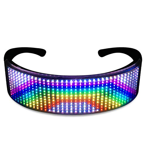 ISAKEN Occhiali LED Bluetooth con Bluetooth Lampeggiante Personalizzabile, Ricaricabili Tramite USB, Control App Luminosi Bicchieri per Feste, Club, concerti, Halloween