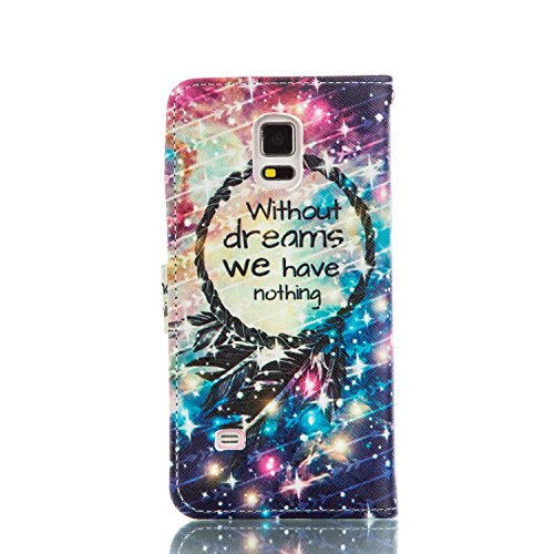 ISAKEN Samsung Galaxy Note 4 Custodia - Elegante borsa Custodia in Pelle Protettiva Flip Portafoglio Case Cover per Galaxy Note 4 / con Supporto di Stand / Carte Slot / Chiusura Magnetica - dreamcather colorate