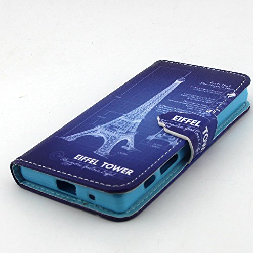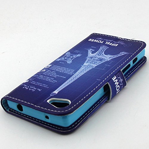 ISAKEN Sony Xperia Z5 MINI Custodia, Xperia Z5 MINI Cover Case, Elegante borsa Custodia in Pelle Protettiva Flip Portafoglio Case Cover per Sony Xperia Z5 Compact (Mini) / con Supporto di Stand / Carte Slot / Chiusura Magnetica (Torre Eiffel Blu)