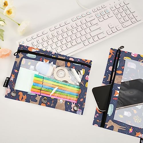 ISAOA Astuccio per matite con cerniera, 3 anelli, animali della foresta, grazioso astuccio per matite con volpe, orso, cervo, astuccio per cosmetici, confezione da 2, impermeabile, #5, one sizex2,
