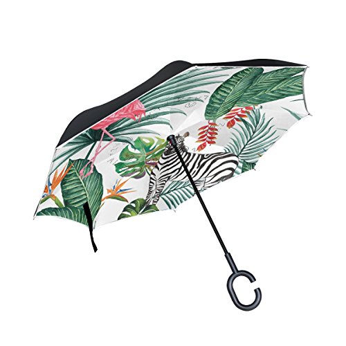 Isaoa grande ombrello invertito ombrello antivento doppio strato Reversed ombrello pieghevole per auto pioggia esterni, manico c-shaped self-standing Zebra e fenicottero ombrello