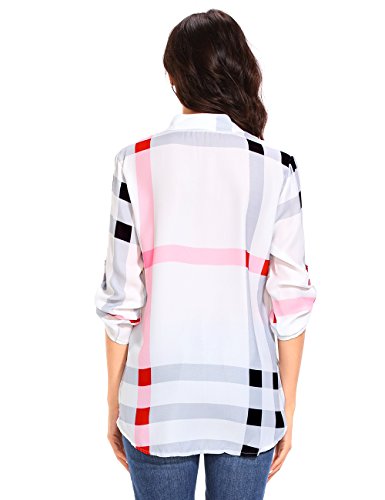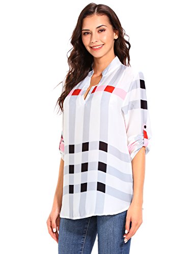 ISASSY - Camicia - A quadri - Collo a V - Maniche lunghe - donna