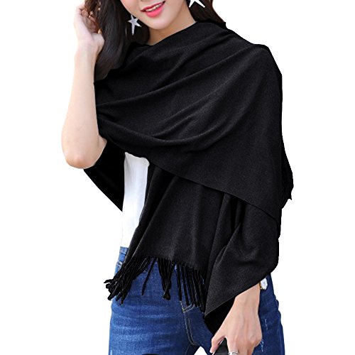 ISASSY, elegante pashmina invernale da donna, lunga, misto cashmere, tinta unita Black Taglia unica