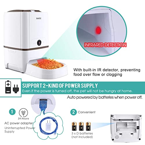 Iseebiz Distributore automatico di crocchette per gatti e cani con registratore vocale, fotocamera, timer programmabile fino a 6 pasti al giorno
