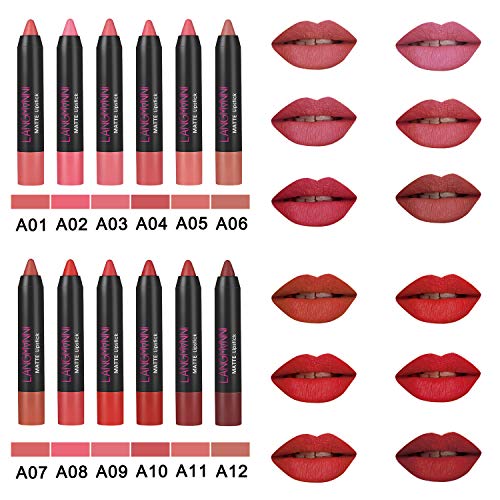 ISENPENK 12pcs Rossetti Set Lipstick Matte Set Lunga Durata Impermeabile Rossetto Rosso Trucco Professionale Confezione da Regalo Rossetti-Set-Matte