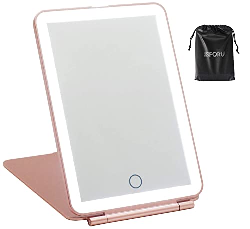 ISFORU Specchio da trucco da viaggio a LED, 3 colori, ricaricabile, portatile, compatto, perfetto per viaggi, trucco e bellezza, regalo di Natale e compleanno per donne
