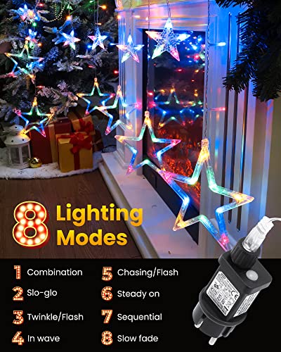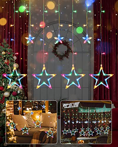 IShabao Luci Natale con 12 Stella per Finestra, 138 LED Catena Luminosa 2.4x1m, Luci Natalizie per Addobbi Finestra, Soggiorno, Camera di Letto, Interno ed Esterno (Colorate)