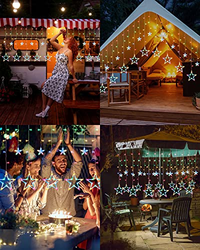 Tenda Luminosa a Stelle con Collegamento End-to-End: 2 m di larghezza 1 m di altezza, cavo extra 3 m di cavo rimovibile. 138 LED (nelle 6 stelle grandi e 6 piccole stelle o sulla catena di luci).