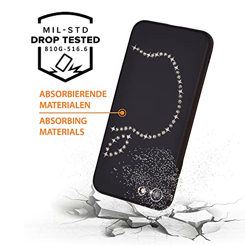 IShield Cover Lux per iPhone SE(2022/2020)/8/7, Classic con *51* Cristalli Swarovski. Custodia Ibrida in Alluminio Satinato con Telaio in TPU Soft-Touch. (Classic Black)