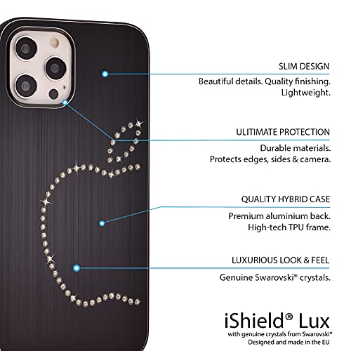 IShield Cover Lux per iPhone 12 PRO Max, Classic con *51* Cristalli Swarovski. Custodia Ibrida in Alluminio Spazzolato con Telaio in TPU Soft-Touch. (Classic Black)