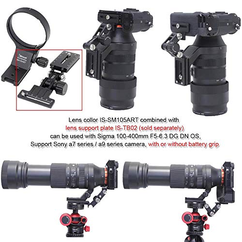 il collare del treppiede è su misura e compatibile con Sigma 105mm F1.4 DG HSM Art (EF/FX/FE/L Mount) e Sigma 100-400mm f/5-6.3 DG DN OS (E / L Mount. unt);