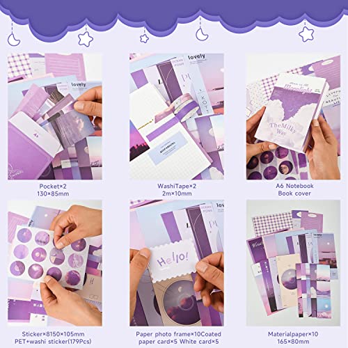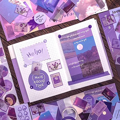 【STILE ESTETICO VIOLA】:Il nostro scrapbooking kit completo comprende tutti gli elementi classici,con motivi di piante, fiori, persone, edifici, cielo, nuvole, luna, mare, montagne, stampa tipografica e molto altro ancora, questo offre un bellissimo aesthetic scrapbook accessory set viola che non passerà mai di moda.