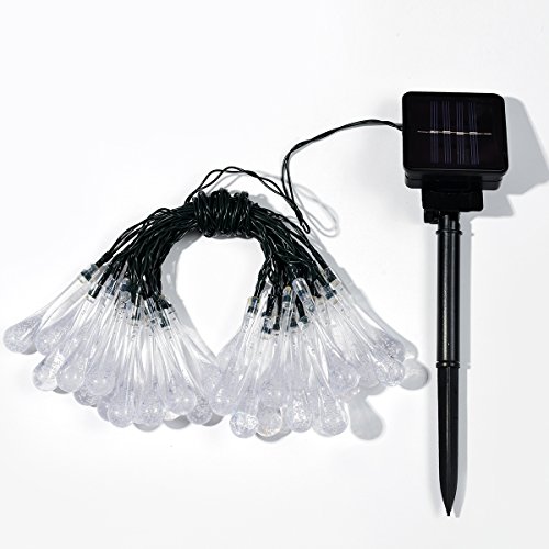 ISIYINER 6 Metri 30 Goccia Dell'acqua Lampadine Luminaria Solare Stringa di Luci Catena Luminosa Colorato Gocce Allungate Impermeabile Decorativa da Interni e Estern