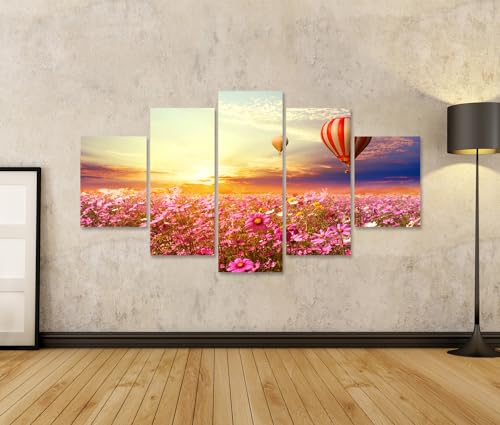 Islandburner Quadri moderni Scenario di campo bellissimo fiore dell'universo e mongolfiera su Stampa su tela Quadro FBX
