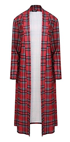 Islander Fashions Womens Manica Lunga Animale Stampato Cardigan crespato Fancy Open Front Tartan Duster Coat Jacket Red Tartan 3X Large