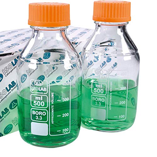 ISOLAB - Bottiglia rotonda di stoccaggio media, 500 ml, con tappo a vite GL 45, vetro borosilicato 3.3, confezione da 2