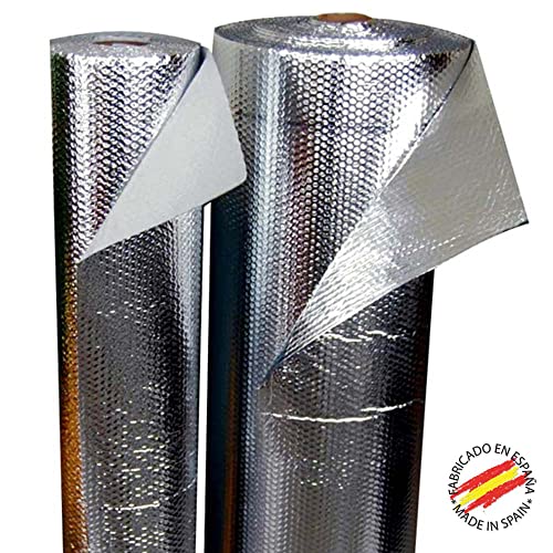 Isolante termico e acustico realizzato in alluminio 100% e bolla di polietilene.