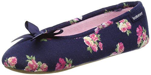 Isotoner Navy Floral Ballet Slipper, Pantofole Donna