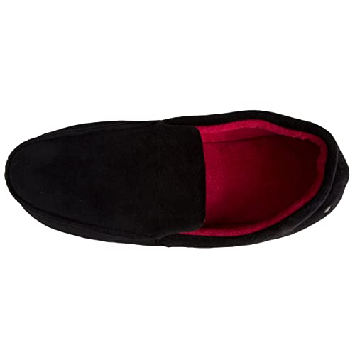 Isotoner Pantofole mocassini uomo in velluto e suola in pelle, Nero, 44 EU