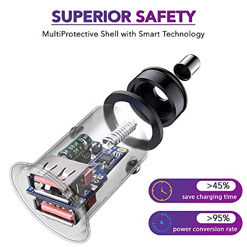 [Dimensioni compatte] Anche se questo caricabatterie da auto è così compatto (5,0 x 2,49 x 2,49 cm) ma ha ottime prestazioni (5 V/5,0 A/30 W). Il caricabatterie USB da auto iSOUL si adatta perfettamente alla presa accendisigari dell'auto e si adatta comodamente con il bordo della presa. La maggior parte dei caricabatterie per auto sul mercato ha solo una potenza massima di 4,8 A o 4,5 A, mentre il caricabatterie da auto iSoul ha una potenza massima di 5,0 A.