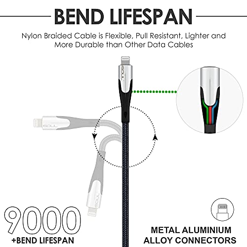 [Cavo intrecciato in nylon resistente] Sicurezza garantita con alte prestazioni. Il connettore compatto in alluminio aiuta a proteggere i tuoi dispositivi. Il cavo Lightning è in grado di sopportare carichi fino a 55 kg ed è stato testato per piegare 95 gradi più di 9.000 volte.
