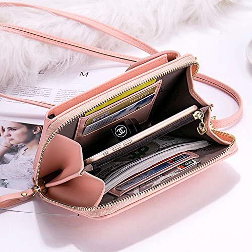 ISpchen Borsa per Cellulare da Donna in Tinta Unita Borsa con Cerniera Lunga Pochette Borsa a Tracolla Diagonale, Adatta per Feste/Picnic/Viaggi