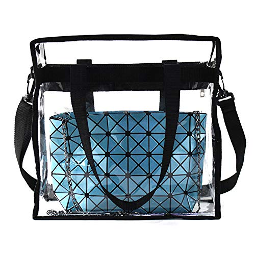 ISpchen Borsa a tracolla trasparente in PVC alla moda impermeabile con tracolla intercambiabile per la spesa da donna per ragazze all'aperto nero # 1