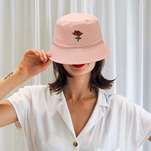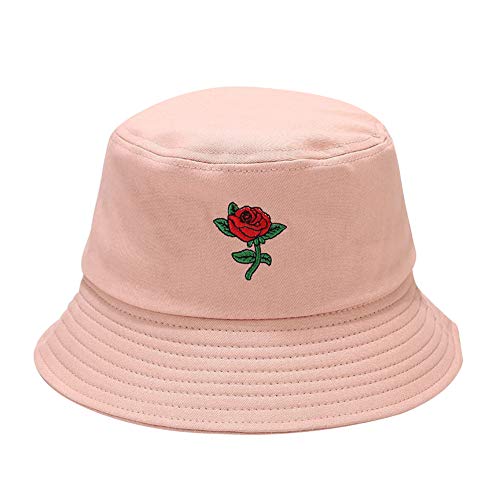 ISpchen, cappello da pescatore unisex in cotone, con ricamo rosa, pieghevole, cappello da sole, cappello a secchiello anti UV, spiaggia, tempo libero, viaggi, estate, colore: rosa