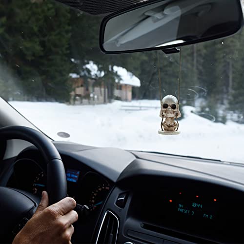 ISpchen Ciondolo Per Auto Con Teschio,Halloween Decorazioni Ornamenti Specchietti Retrovisori Auto,Ornamenti Per Auto Teschio Altalena Freddo Ciondolo Cranio,Scheletro Oscillante Appeso Ornamento