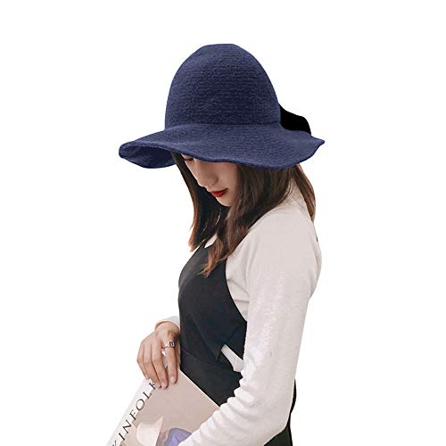ISpchen Classico Cappello Chiesa Wool Round Fedora Arco Cappelli Secchio Inverno Lavorato a Maglia Invernale Uncinetto Caldo di per Donna Cappello di Feltro Fedora Bowler Cappello