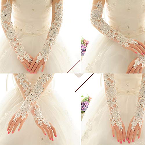 ISpchen Guanti a Gomito Senza Dita in Pizzo da Donna Perle Strass Guanti Lunghi da Sposa per Accessori per Guanti da Cerimonia in Costume da Festa in #1