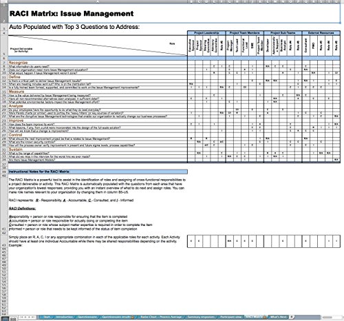 Gives you a professional Dashboard to guide and perform a thorough Issue Management Self-Assessment. Versatile;