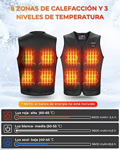 ISSYZONE Gilet riscaldabile uomo, gilet termico lavabile con 8 posti di riscaldamento, 2 controlli, gilet elettrico USB ricaricabile per sci