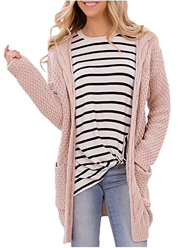 Issza Langram - Cardigan da donna in maglia oversize, cardigan cardigan Jumper lungo lavorato a maglia con tasche