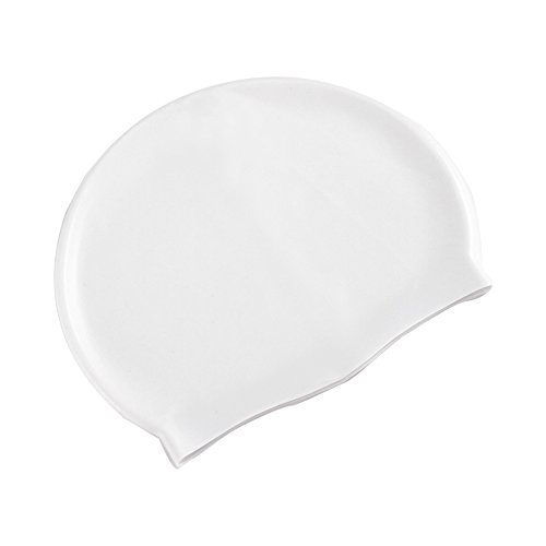 Isuper - Cuffia da piscina, in silicone, per bambini, donne, impermeabile, protezione dei capelli lunghi, protezione dai raggi UV, bianco