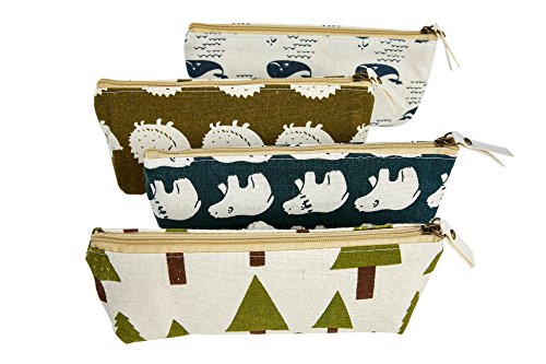 ISuperb 4PCS Astuccio Pencil Case Cactus Foresta Pattern Portapenne Porta Matite per Scuola Studenti (Serie forestale)