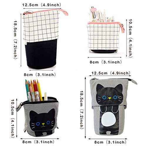 ISuperb 2 Pack Astuccio Pencil Case Portamonete Transformer Stand Pencil Holder Astuccio per Matite Portamatite Cartoleria Organizer per Bambini Adolescente Studente (Plaid grigio + bianco)